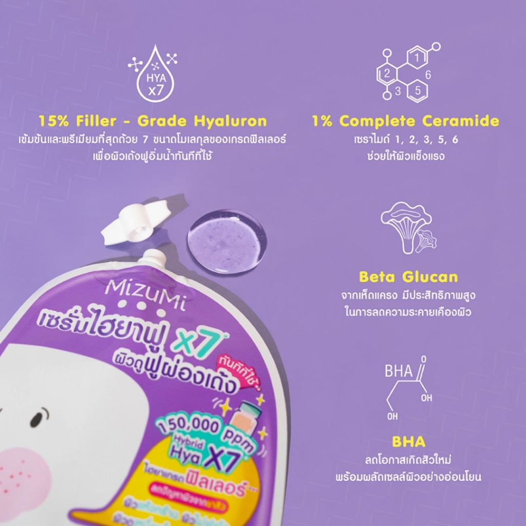 MizuMi Hya Acne Repair Serum (กล่องม่วง) เซรั่มไฮยาเกรดฟิลเลอร์ (6g x 6ซอง)