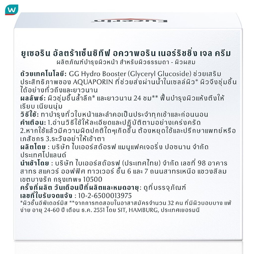 Eucerin ยูเซอริน อัลตร้าเซ็นซิทีฟ อควาพอริน เนอร์ริชชิ่ง เจล ครีม 50 มล. ผิวธรรมดา-ผิวผสม