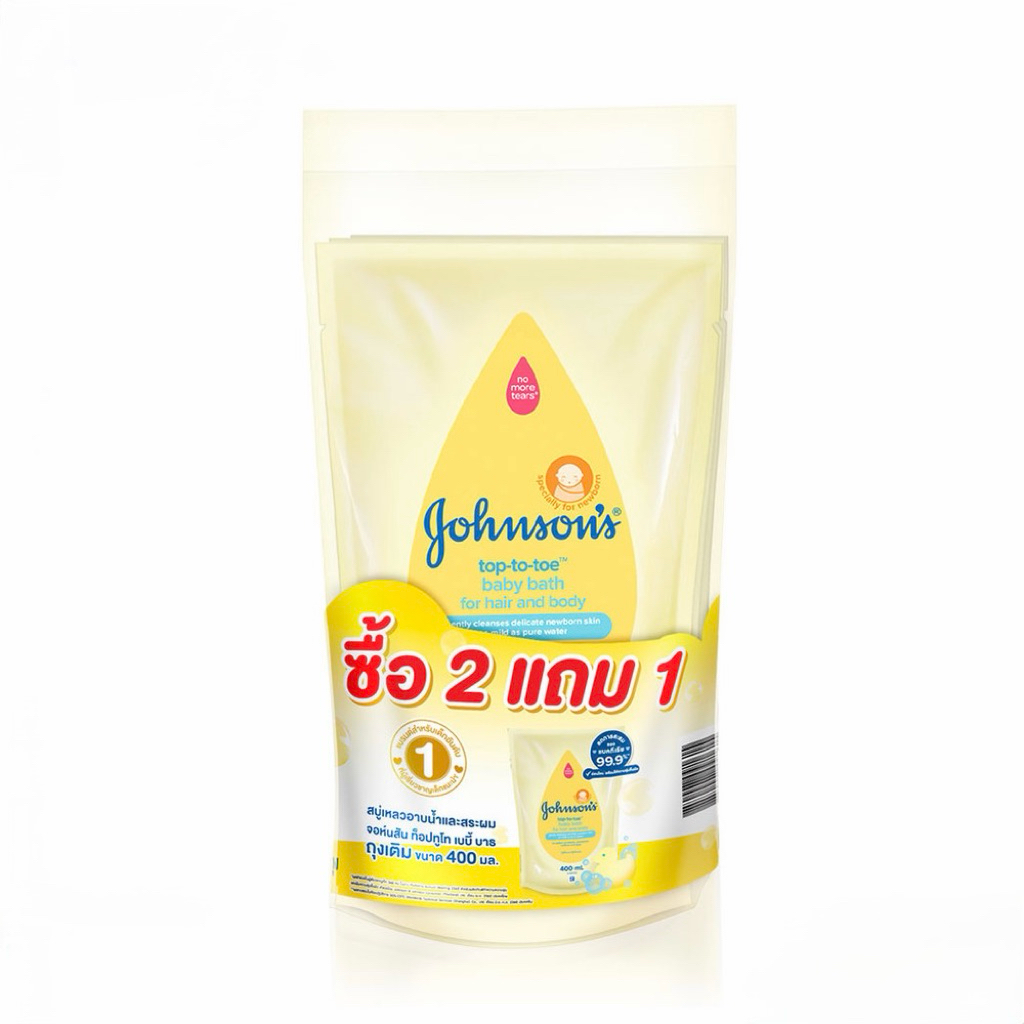 Johnson's จอห์นสัน สบู่เหลวทำความสะอาดเส้นผมและผิว ชนิดถุงเติม ขนาด 400 มล. แพ็ค 3 ถุง