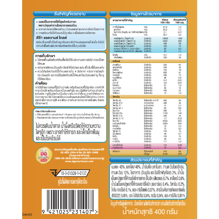 DG นมแพะ ดีจี1 แอดวานซ์โกลด์ นมผงอาหารทารกเตรียมจากนมแพะ ขนาด 400 กรัม
