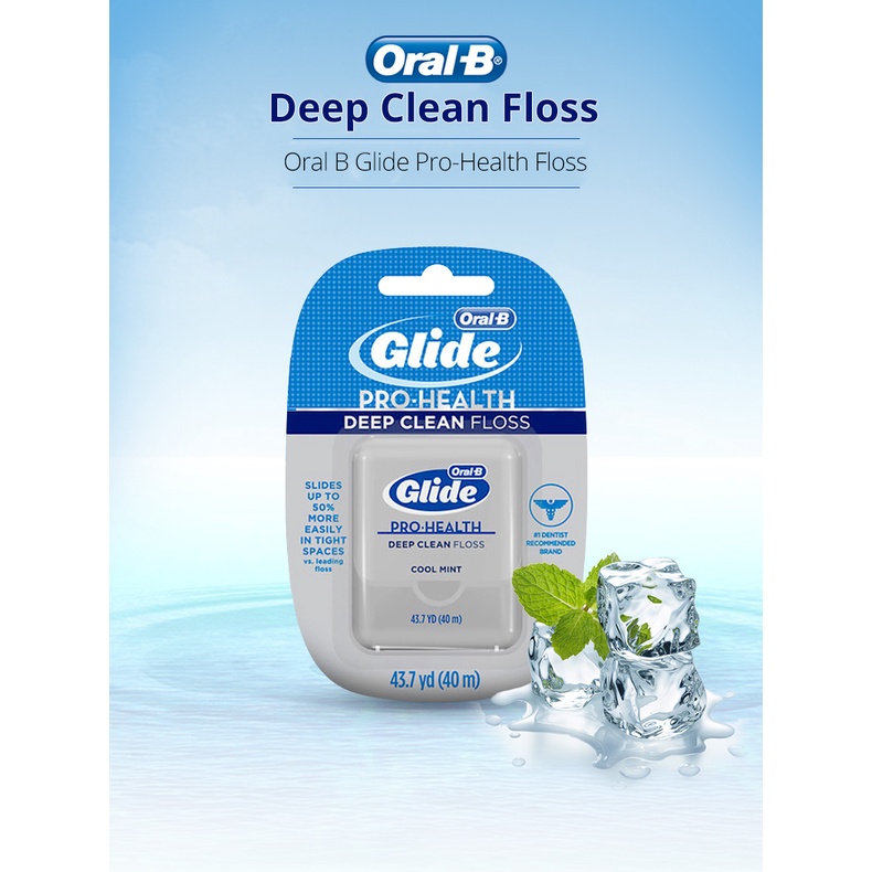 Oral B Glide Pro-Health Deep Cleaning Floss แบบพกพา Easy-Slide-In Dental Flosser Mint Flat Fine Smooth Thread Deep Cleaning Dental Floss 40M