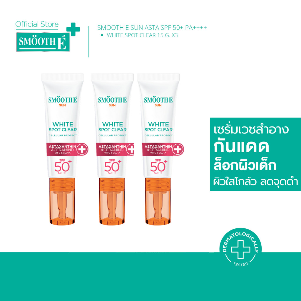 [แพ็ค 3] Smooth E Sun Asta SPF 50+ PA++++ 15g. (White) เซรั่มครีมกันแดดล็อกผิวเด็ก Astaxanthin เนื้อบางเบา ป้องกันแสง UV