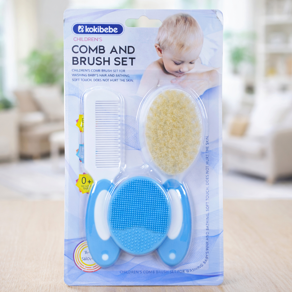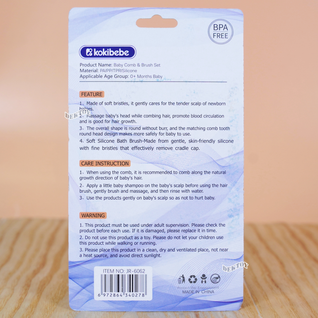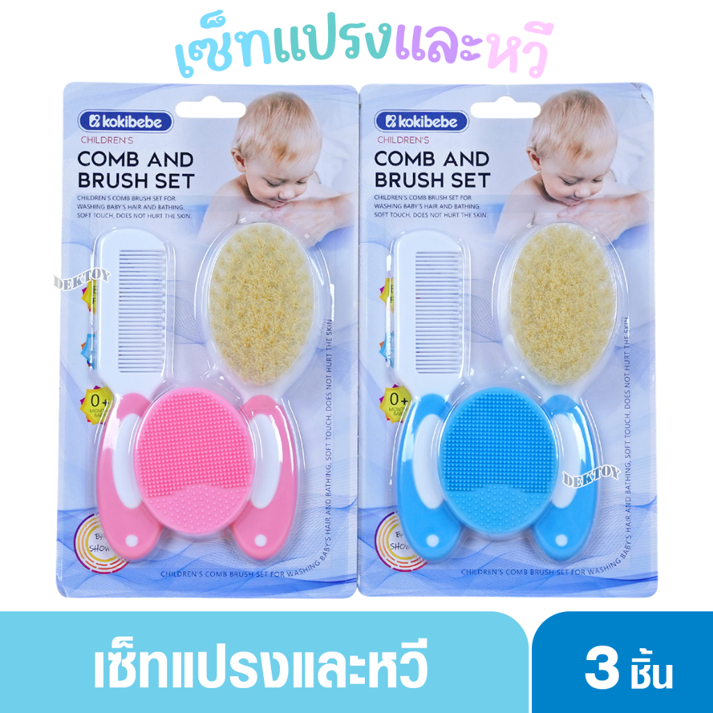 Kokibebe แปรงหวีผมเด็กแปรงขนนุ่มเซ็ท 3 ชิ้น อ่อนนุ่ม อ่อนโยน BPA free รุ่น JR6062