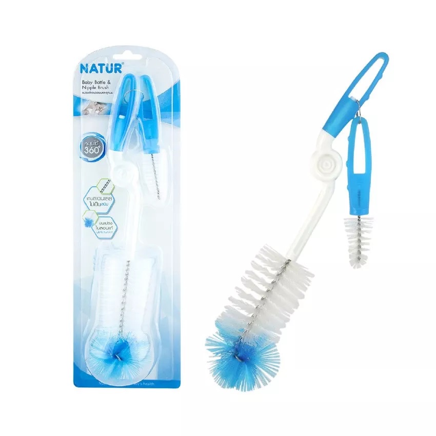 NATUR เนเจอร์ แปรงล้าง ขวดนมด้ามหมุน 360 องศา (1ด้าม)