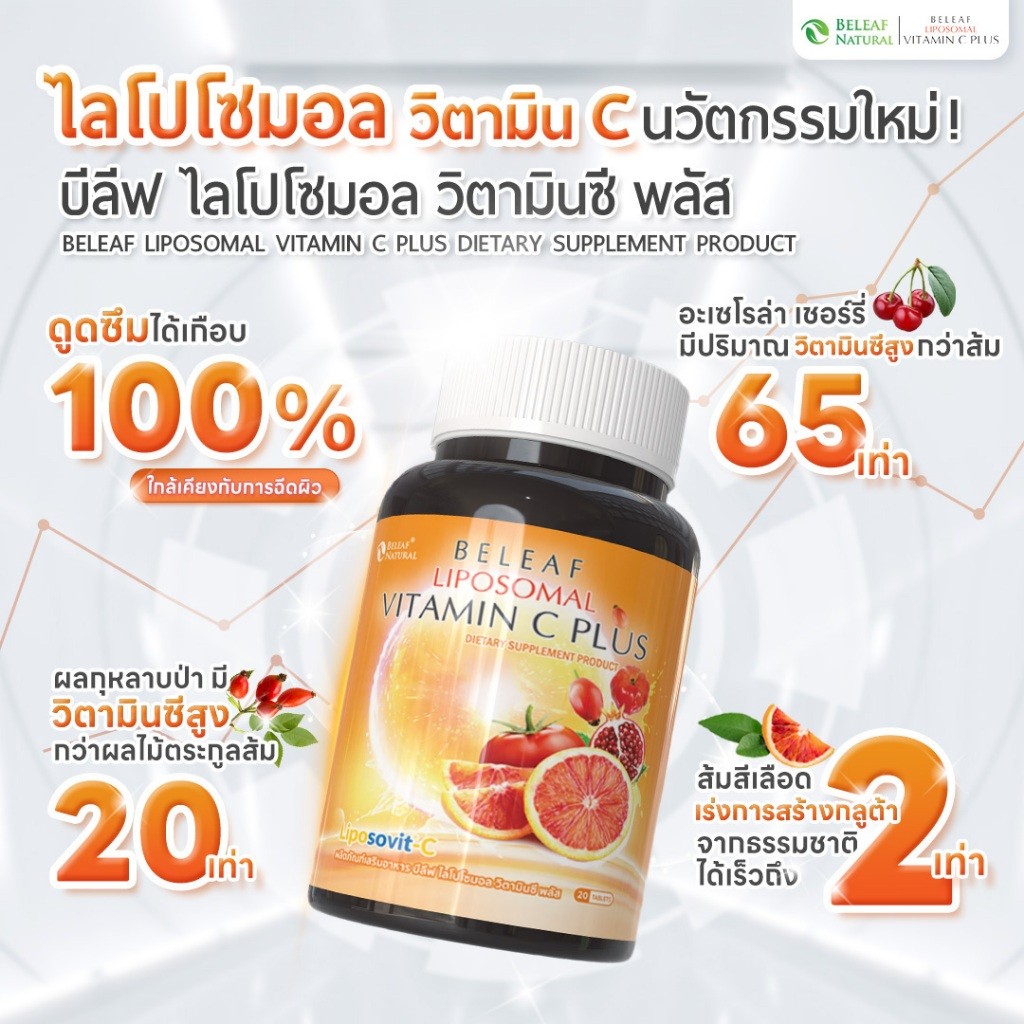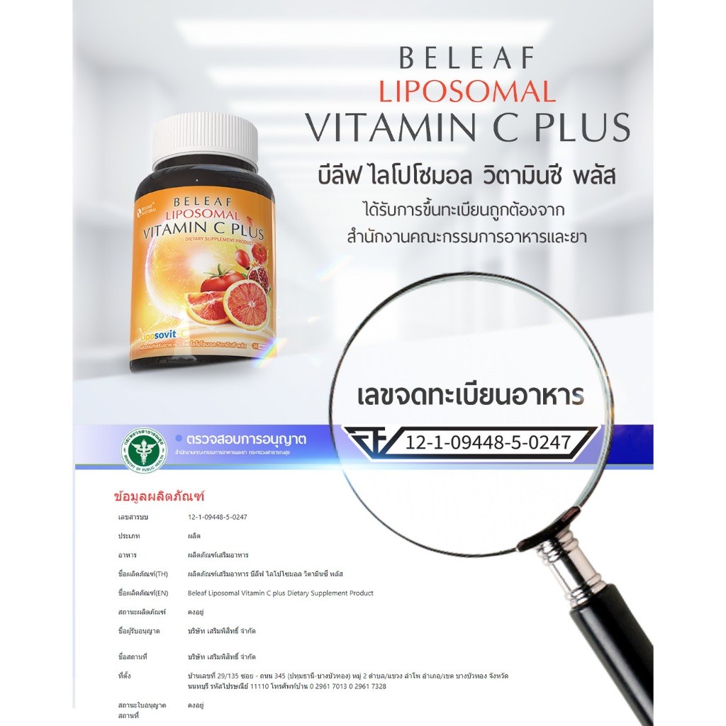 Beleaf บีลีฟ ไลโปโซมอล กลูต้า พลัส / วิตามินซี พลัส / แอสตาแซนธิน (1กระปุก)