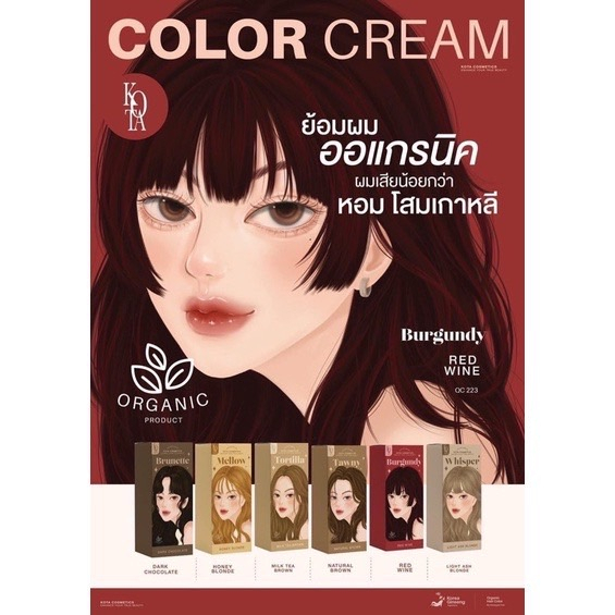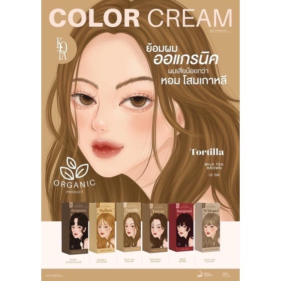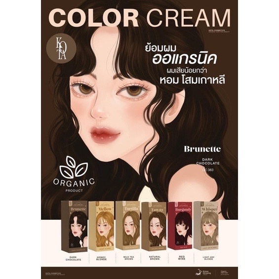 🎨KOTA Color Cream สีย้อมผมออแกนิค ยาย้อมผม ม ี 9 เฉดสี 100 ml.
