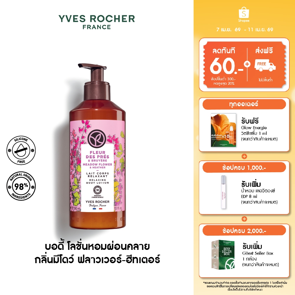 [EXP 2027-12-12] อีฟ โรเช Yves Rocher Meadow Flower & Heather Relaxing Body Lotion 390มล.โลชั่นบำรุงผิว