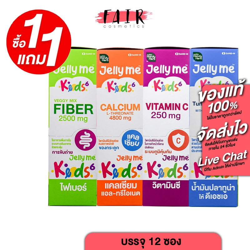 [ซื้อ1แถม1]Handy Herb Jelly Me Kids Calcium/Vitamin C/Tuna Oil DHA/Fiber แฮนดี้ เฮิร์บ เจลลี่ มี คิดส์[กล่อง 12 ซอง]
