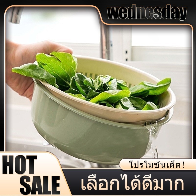 2in1 พร้อมตะกร้า 2 ชั้น 3 ขนาด พลาสติก พร้อมส่ง ชุดตระกร้ากรอง ตระกร้าล้างผัก กะละมังล้างผักผลไม้