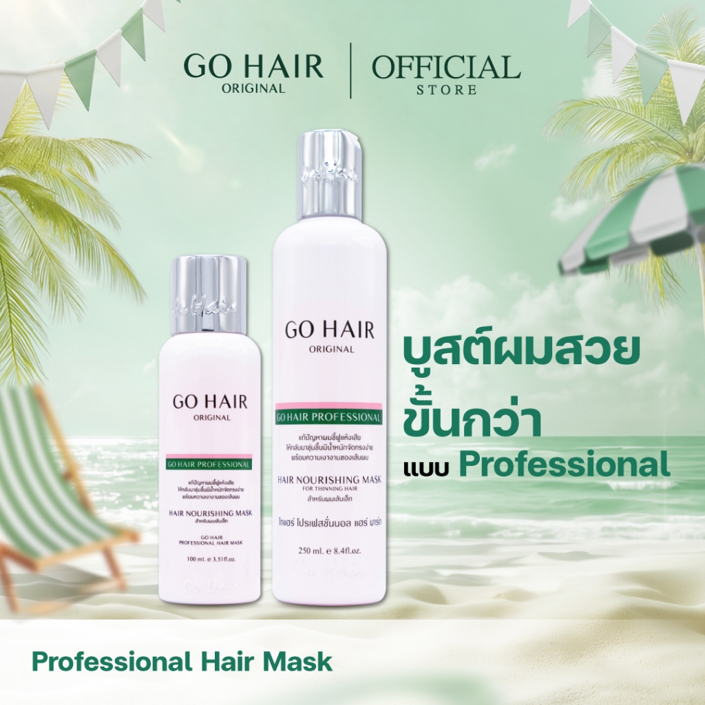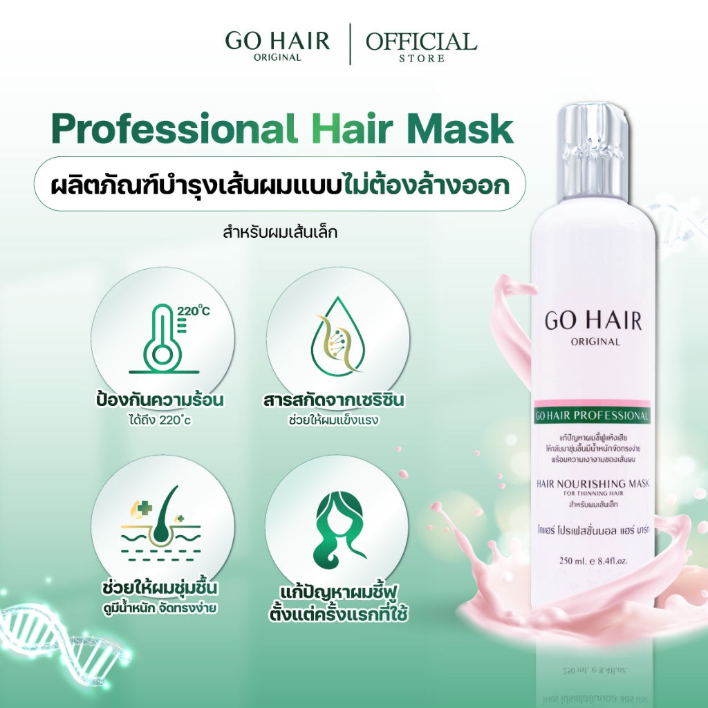【HOT】GO HAIR Professional Hair Mask โกแฮร์ขาว อาหารผม ผมเส้นเล็ก ผมเสียขาดง่าย ชี้ฟู กันความร้อน (มี 2 ขนาด)