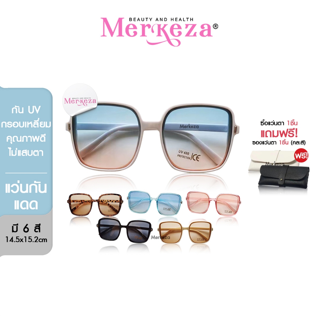 Merkeza Sunglasses แว่นกันแดด กล่องแว่นตา แฟชั่นหน้าร้อน สไตล์วินเทจ กันแสงUV ใส่ขับรถ ถนอมสายตา เลนส์บังแดด