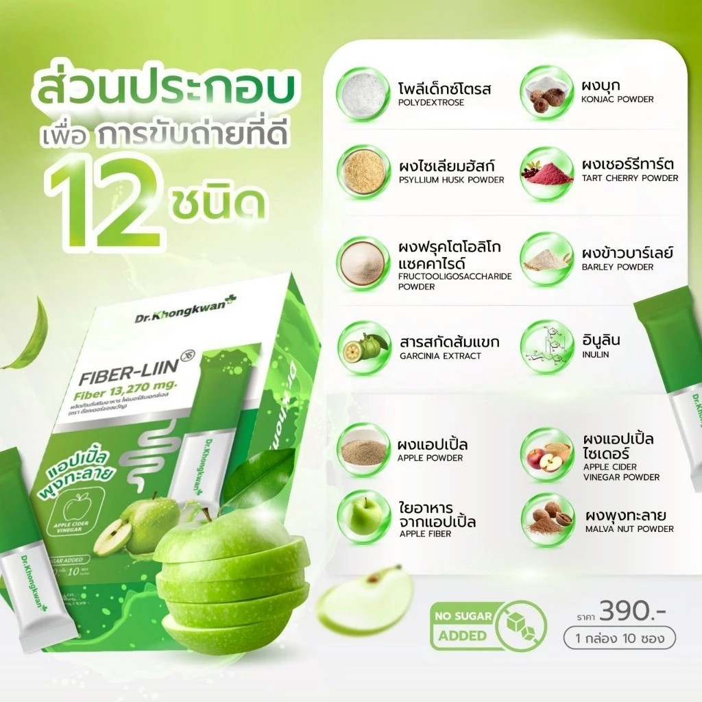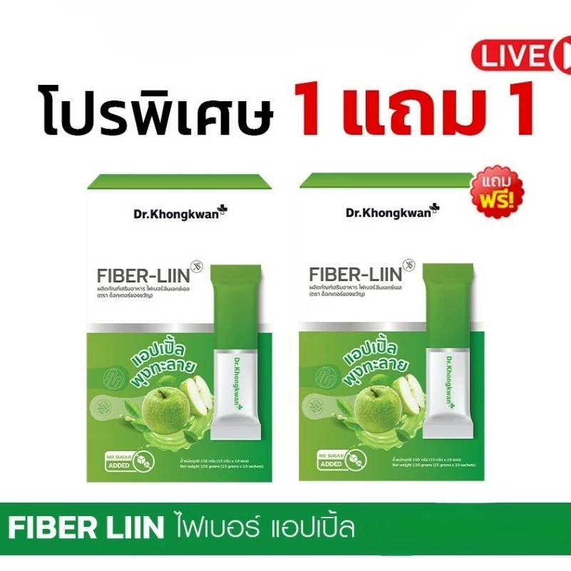 (📍กดในไลฟ์ถูกกว่า📍) Dr.Khongkwan Fiber-liinไฟเบอร์ ลิน ดร.ของขวัญ 1 กล่องมี 10 ซอง มีพรีไบโอติด