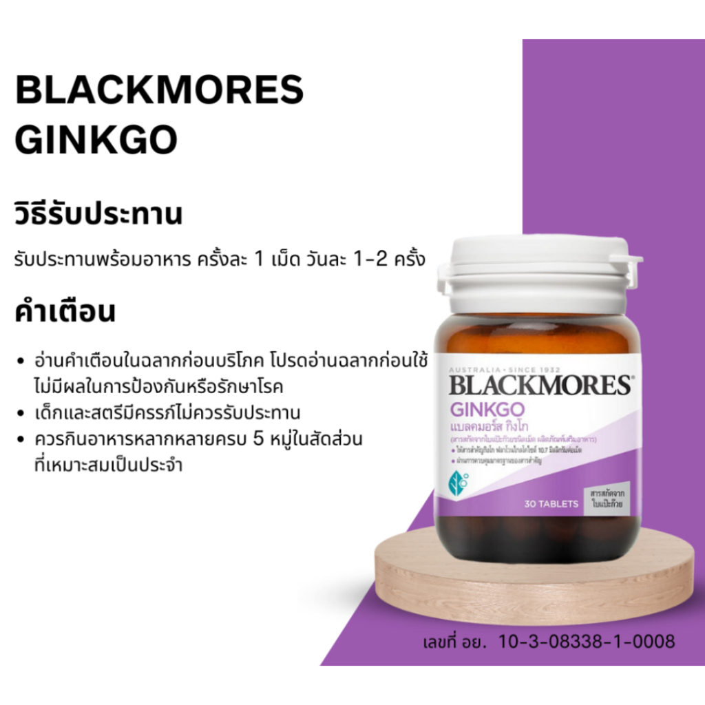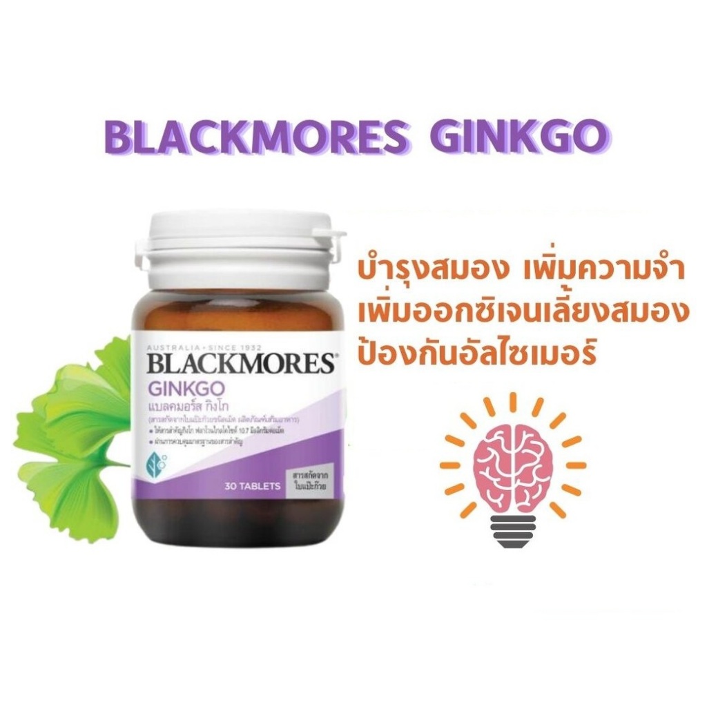 Blackmores Ginkgo แบลคมอร์ส กิงโก (สารสกัดจากใบแป๊ะก๊วยชนิดเม็ด) ขนาด 30 เม็ด เพิ่มความจำ ป้องกันอัลไซเมอร์