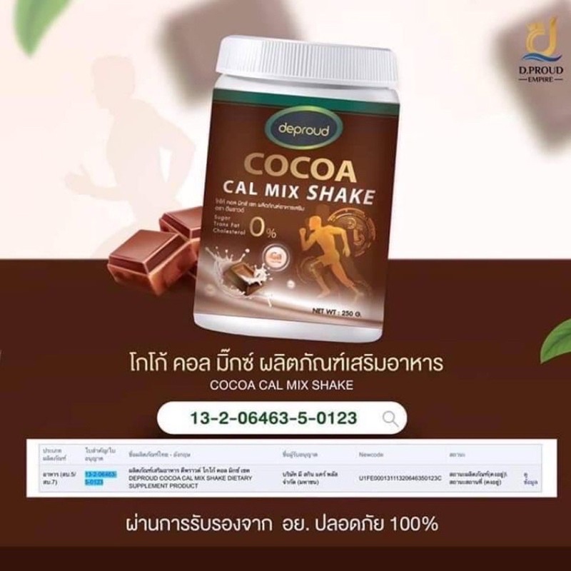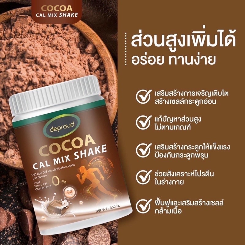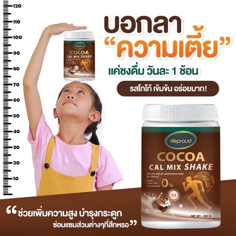 Deproud Cocoa Cal Mix shake ดีพราว โกโก้ ขนาด 250 g. โกโก้เพิ่มสูง เพิ่มความสูงแบบปลอดภัย โกโก้แคลเซียม