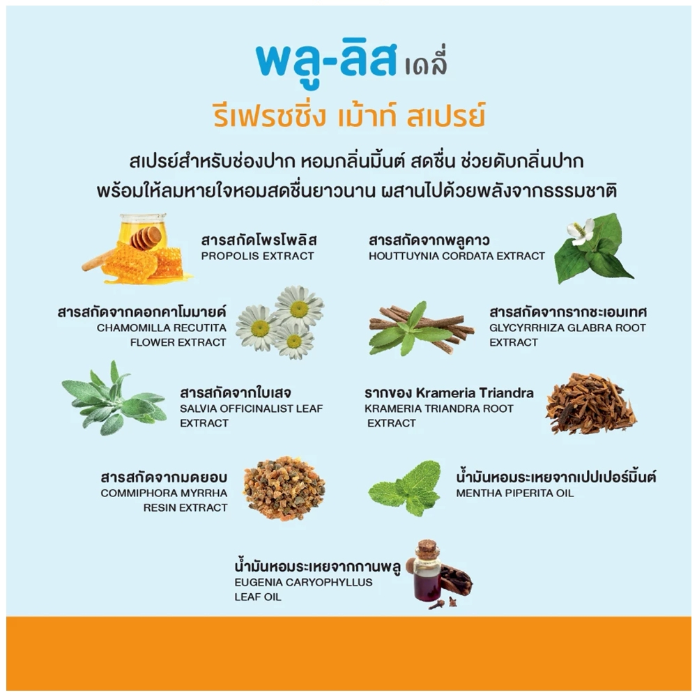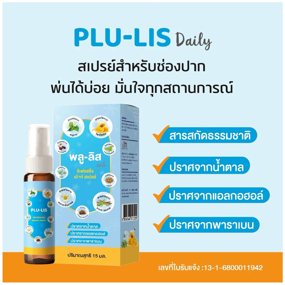 Plu-Lis Daily Refreshing Mouth Spray 15 ml. พลู-ลิส เดลี่ รีเฟรชชิ่ง เม้าท์ สเปรย์ 15 มล.