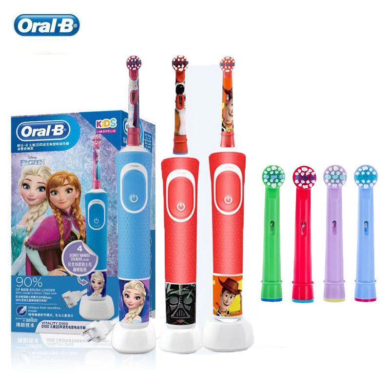 แปรงสีฟันไฟฟ้าเด็ก2โหมดทําความสะอาดฟันเหงือกดูแลกันน้ําแบบชาร์จแปรงฟันพร้อมแปรงเติมสําหรับ3+ปี