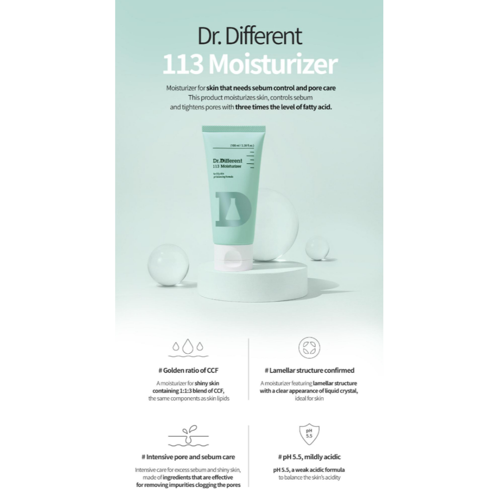 DR.DIFFERENT 113 Moisturizer มอยซ์เจอไรเซอร์ เนื้อครีมให้ความชุ่มชื้นสำหรับคนผิวมัน 100ml/ K-BEAUTY