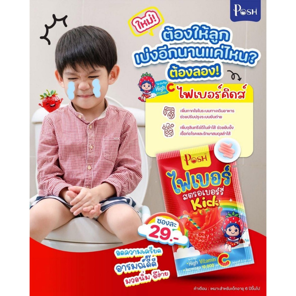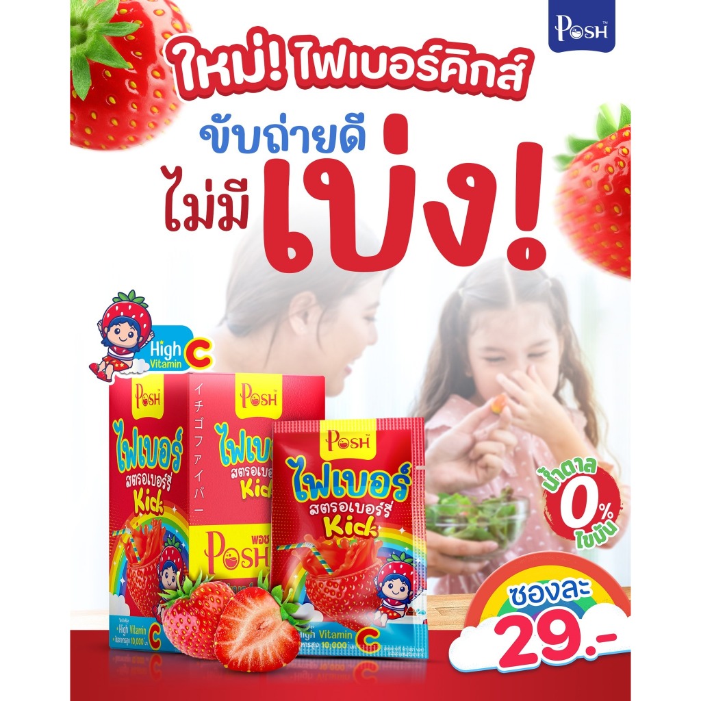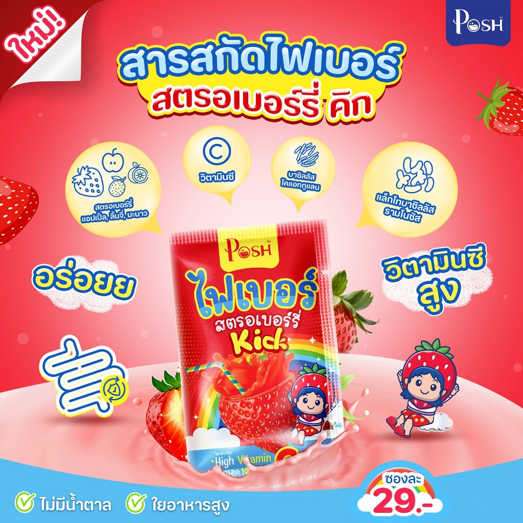 Poshmedica พอช เมดิก้า ไฟเบอร์ สตรอเบอร์รี่ คิก [6 ซอง] ไฟเบอร์สำหรับเด็ก