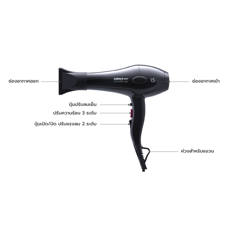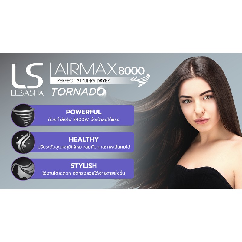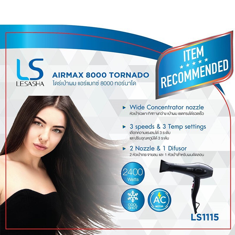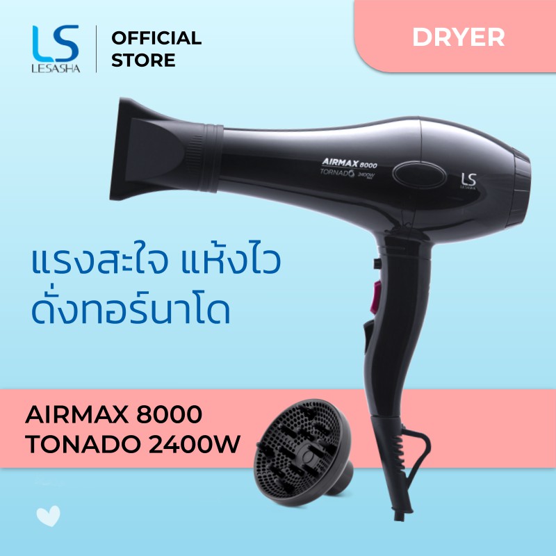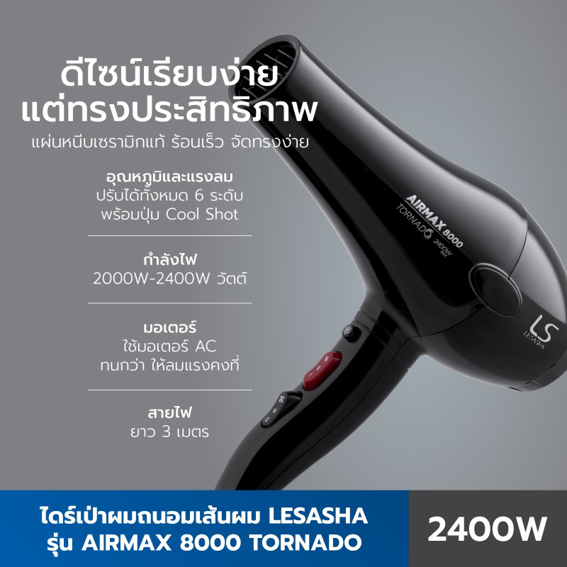 LESASHA เลอซาช่า ไดร์เป่าผม Airmax 8000 Tornado 2400w AC รุ่น LS1115 ประกัน 2 ปี ปรับ 3 ระดับ