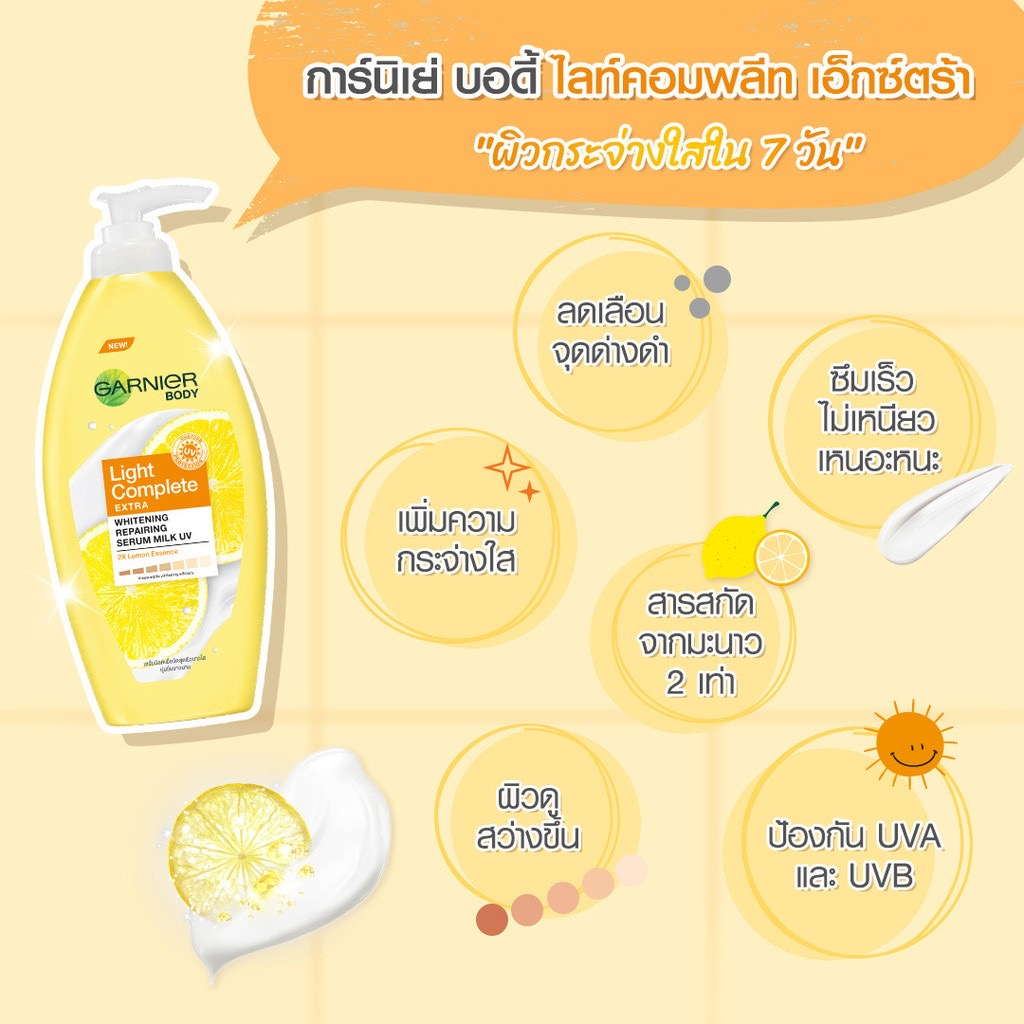 GARNIER การ์นิเย่ ไวท์ บอดี้ โลชั่น 400 มล ขวดปั๊ม ครีมผิวขาว ครีมทาตัว