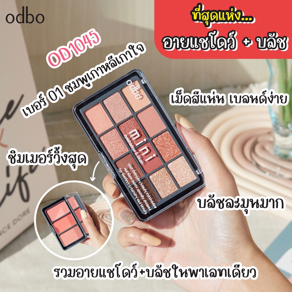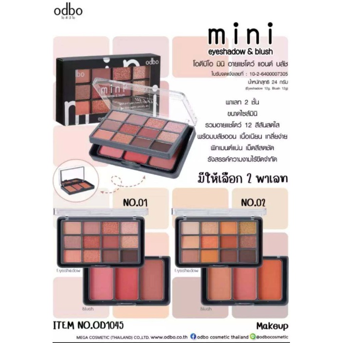 OD1045 ODBO EYESHADOW&BLUSH โอดีบีโอเซตแต่งหน้า อายแชโดว์ 12 สี+บลัชออน 3 สี สีสดใส กันน้ำ ติดทน