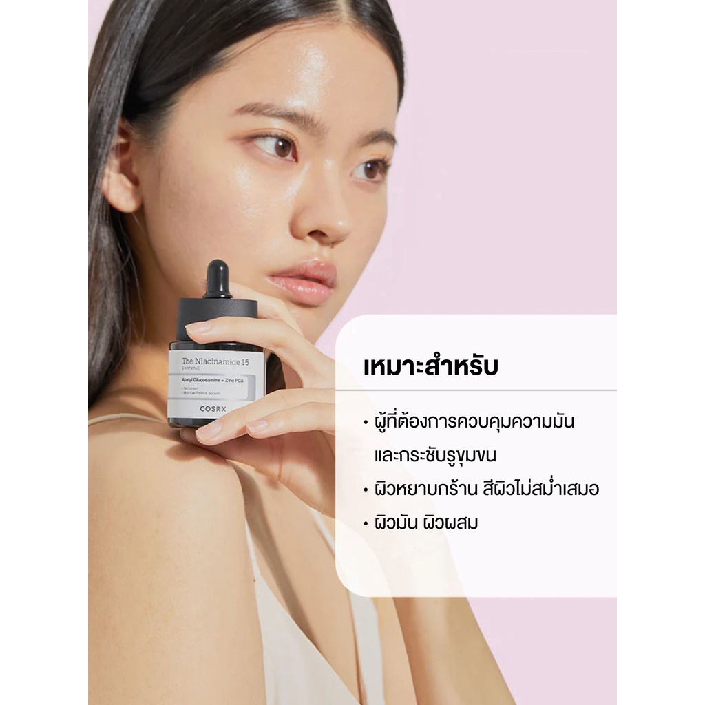 COSRX The Niacinamide 15 Serum 20ml เซรั่มไนอะซินาไมด์สูตรเข้มข้นที่ผสานส่วนผสมจัดการสิวอย่างลงตัว จากคอสอาร์เอ็กซ์