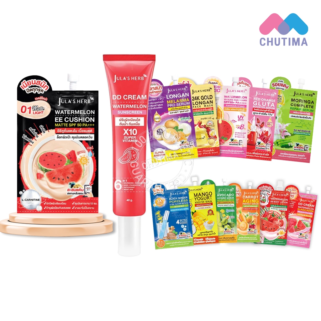 (หลอด/ซอง) จุฬาเฮิร์บ ครีมซอง ครบทุกสูตร ดีดี ครีมแตงโม, เซรั่มลำไย, ขิงดำ, มะรุม, เจลดาวเรือง, คุชชั่น JULA'S HERB
