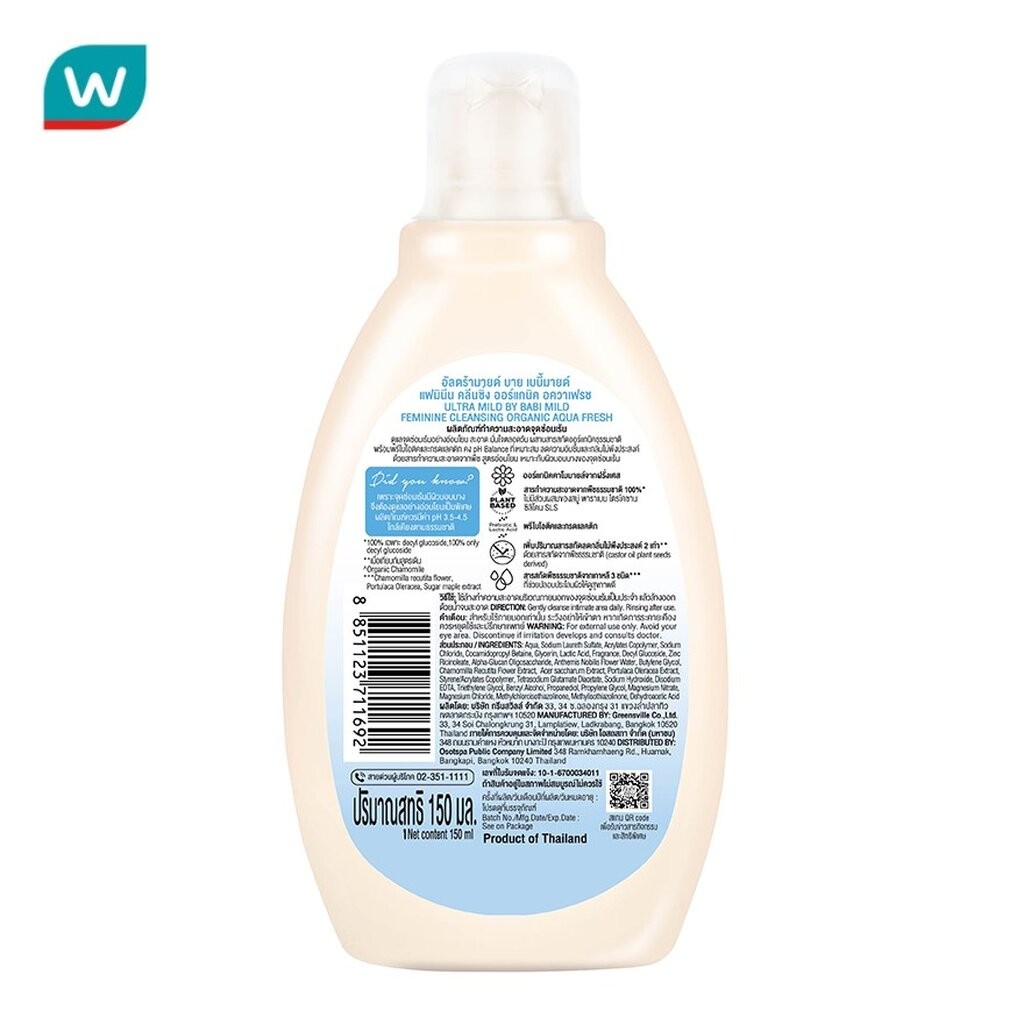 Ultra Mild อัลตร้ามายด์ บายเบบี้มายด์ ออร์แกนิค เฟมินีน คลีนซ ิ่ง อควาเฟรช 150 มล. ดูแลจุดซ่อนเร้น