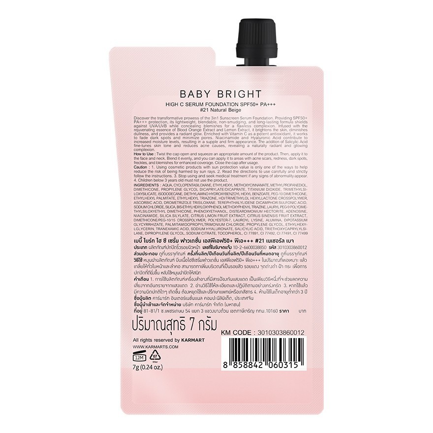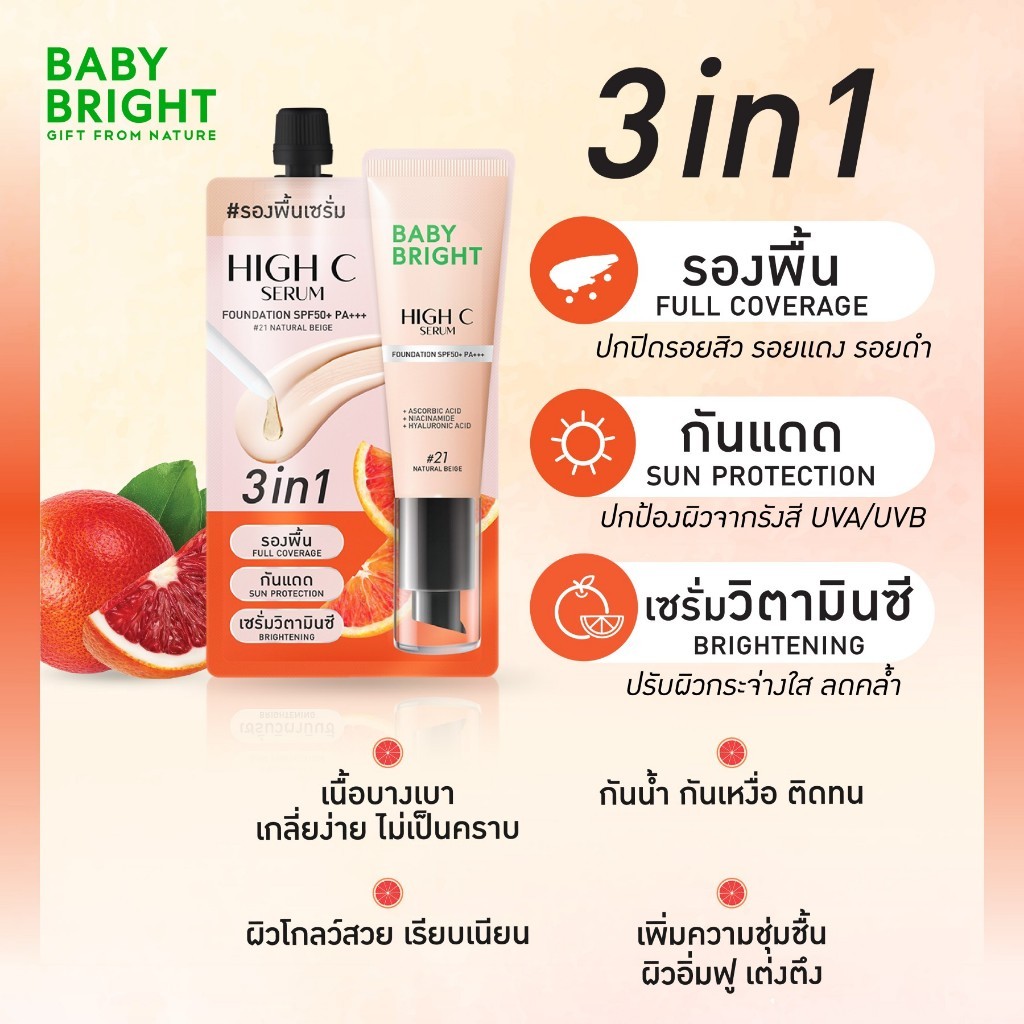 BABY BRIGHT High C serum 7G #21 SPF50+ PA+++ไฮซีเซรั่มฟาวเดชั่น เนเชอรัลเบจ เบบี้ไบร์ท รองพื้นเซรั่ม 3IN1 ผสมกันแดด