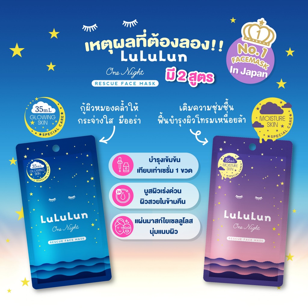 ลูลูลูน เฟซ มาส์ก วัน ไนท์ ซี 1 แผ่น สูตรผิวชุ่มชื้น / LuLuLun One Night Hydration Face Mask 1pcs