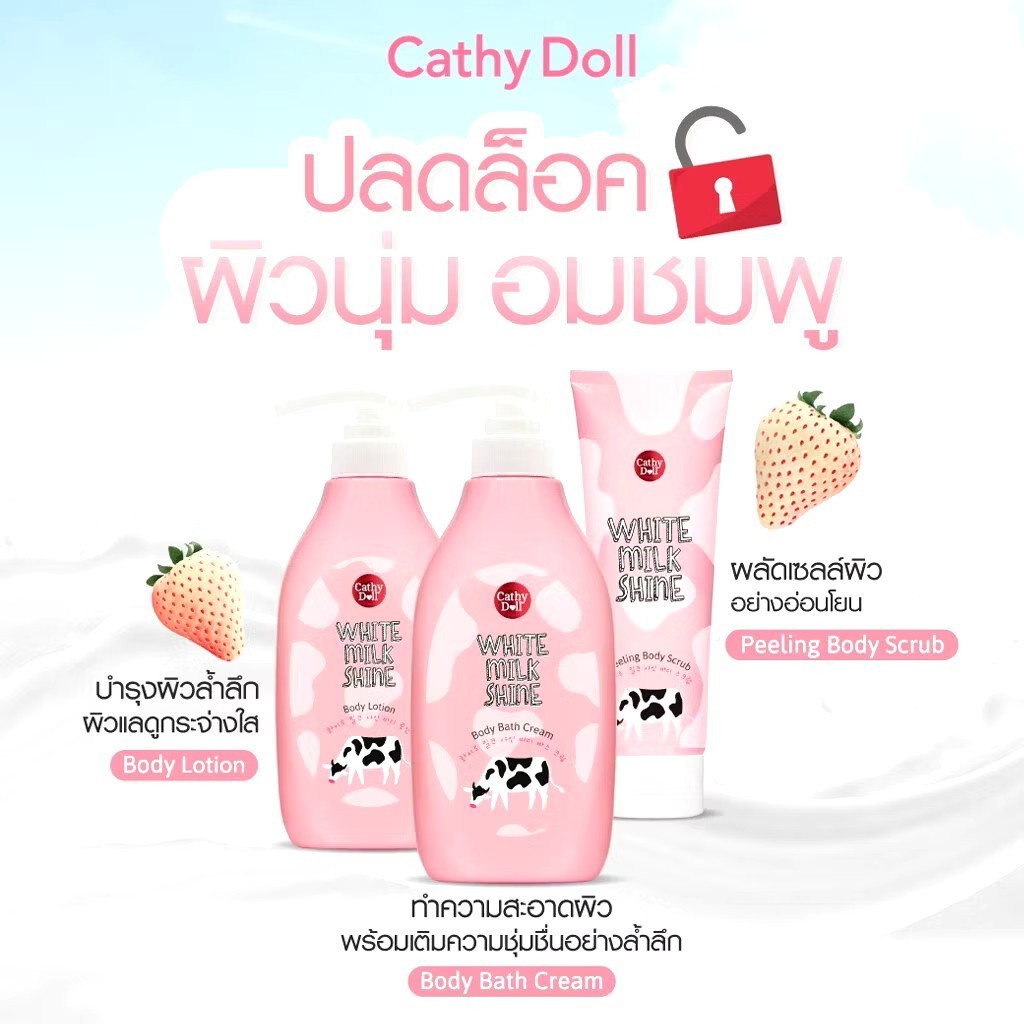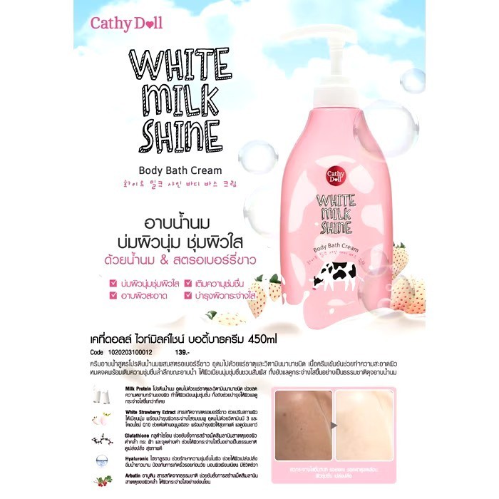 Cathy doll อาบน้ำน้ำนม&สตอเบอรี่ขาว บ่มผิวนุ่มชุ่มผิวใส 450ml.