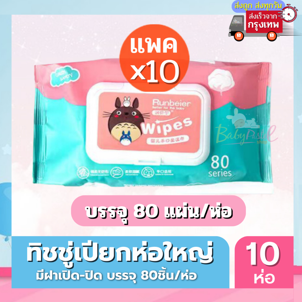 (ส่งด่วน/ส่งทันที🔥) ทิชชู่เปียก แพค 10 ห่อสุดคุ้ม สำหรับเด็ก ทิชชู่เปียกสูตรน้ำ ไม่มีส่วนผสมแอลกอฮอล์ 1ห่อบรรจุ 80ชิ้น