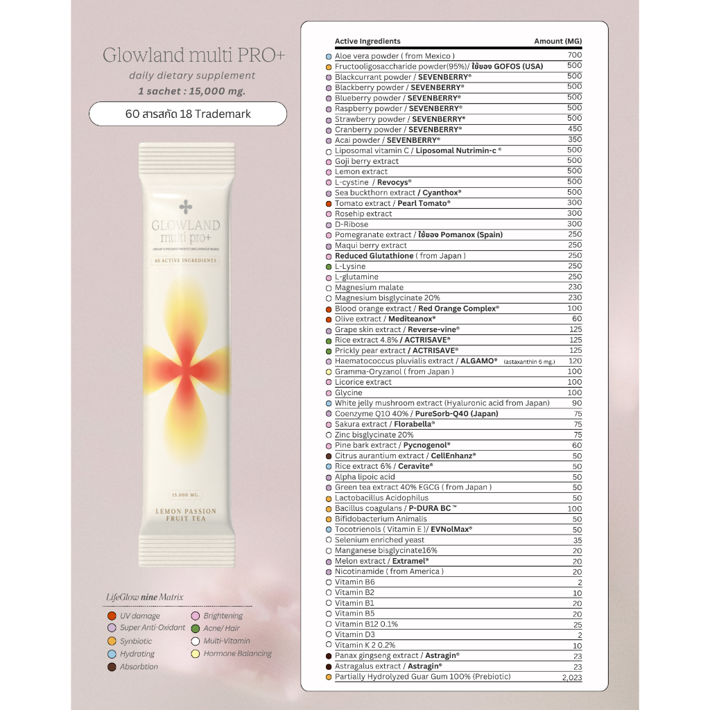 [พรีออเดอร์] Glowland BFF Multi PRO+ สูตรใหม่ วิตามินบำรุงผิว วิตามินกันแดด ฝ้า Glosscera millimolie โกลว์แลน