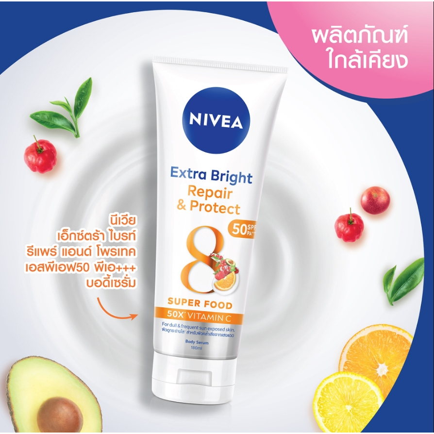 Nivea นีเวีย เอ็กซ์ตร้า ไบรท์ บอดี้เซรั่ม 180 มล.เซรั่มบำรุงผิว ยูวี ฟิลเตอร์ SPF50 PA+++