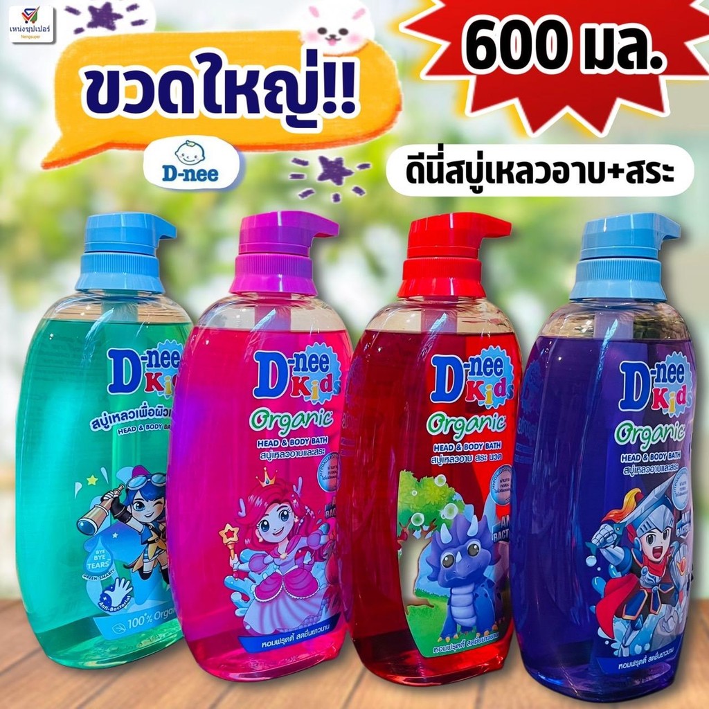 (1ขวดใหญ่หัวปั๊ม!!) ดีนี่คิดส์ (สบู่เหลวอาบ+สระ) สบู่เด็กออแกนิค D-nee Kids 600 มล.