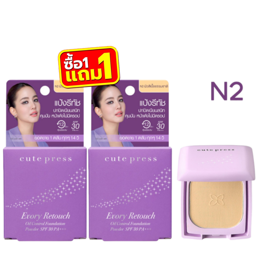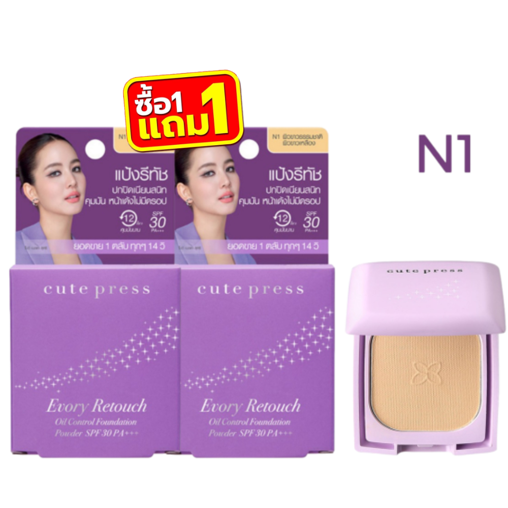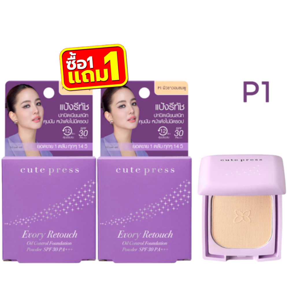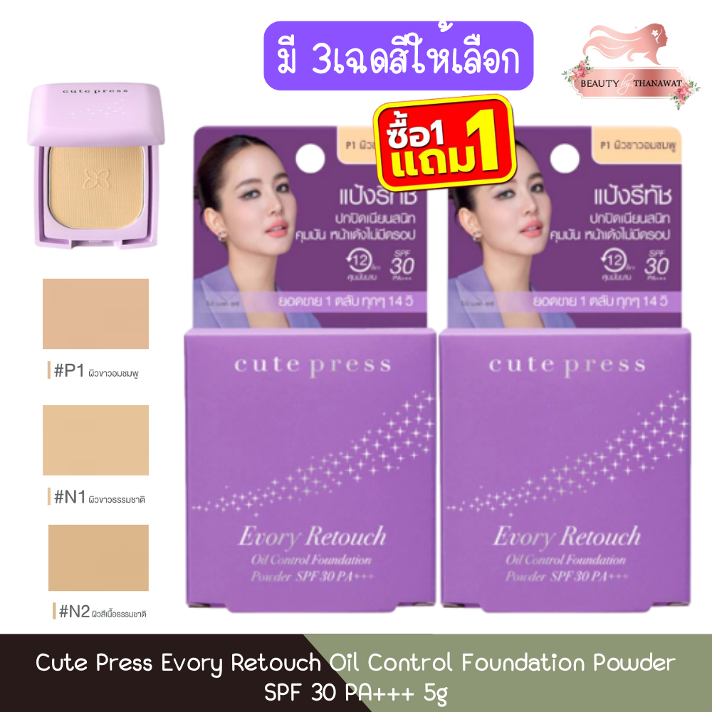 (มินิ1แถม1ม่วง) Cute Press Evory Retouch Oil Control Foundation Powder SPF 30 PA+++ 5g คิวท์เพรส อิเวอร์รี่ รีทัช 5กรัม