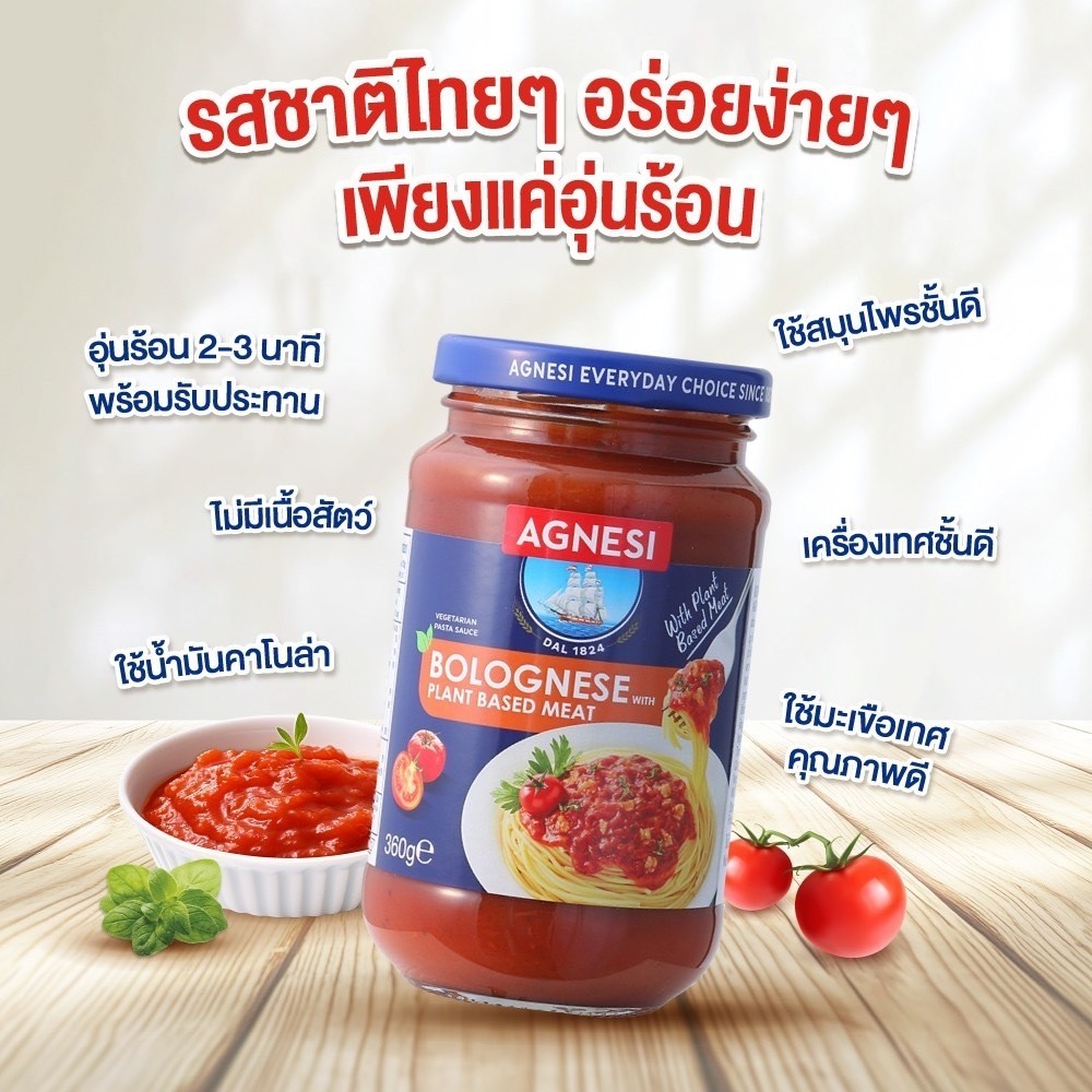 พร้อมส่ง Agnesi Pasta Sauce Bolognese+Plant Based 360 g.ซอสพาสต้าโบโลเนส+เนื้อจากพืช