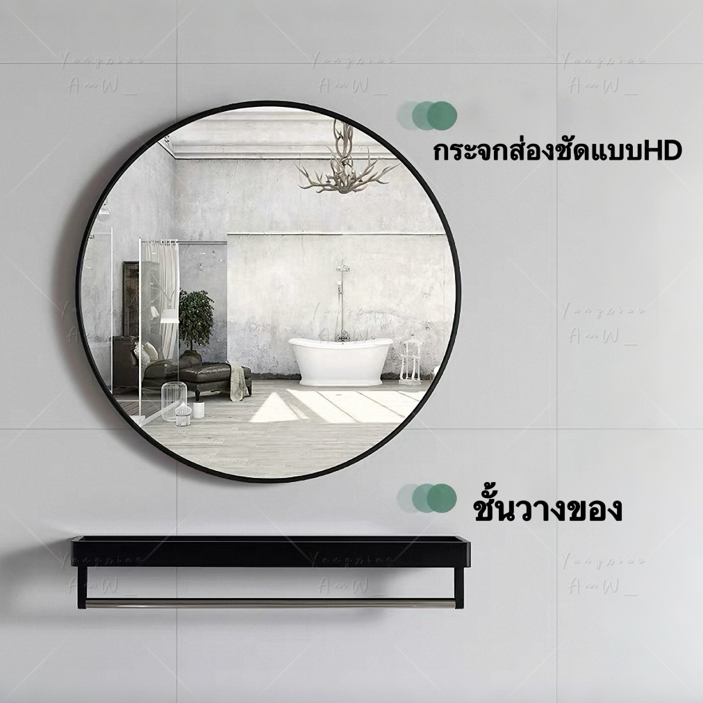 Dogegg🐶มีพร้อมส่ง กระจกแขวนห้องน้ำทรงกลม โครงอะลูมิเนียม ขนาด40/50ซม.