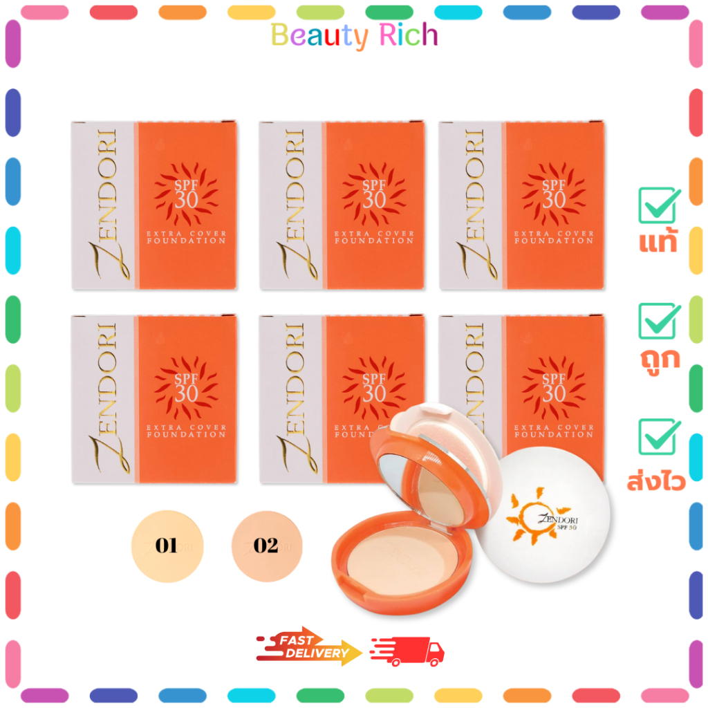 (แพ็ค 6 ตลับ)ZENDORI EXTRA COVER POWDER FOUNDATION(สีส้ม) - เซนโดริ เอ็กซ์ตร้า แป้งผสมรองพื้น(8 g.)
