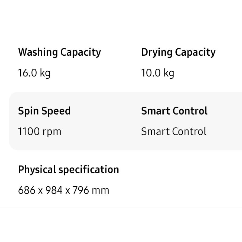 SAMSUNG เครื่องซักผ้าฝาหน้า 16 กิโล และอบผ้า 10 กิโล WD16T6500GV/ST พร้อมด้วย Eco bubble, ซัก 16 กก. / อบ 10 กก.