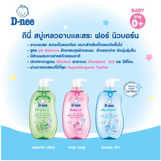 D-nee ดีนี่ เฮดแอนด์บอดี้ เบบี้วอช สูตรเจนเทิล 380 มล ขวดสีฟ้า