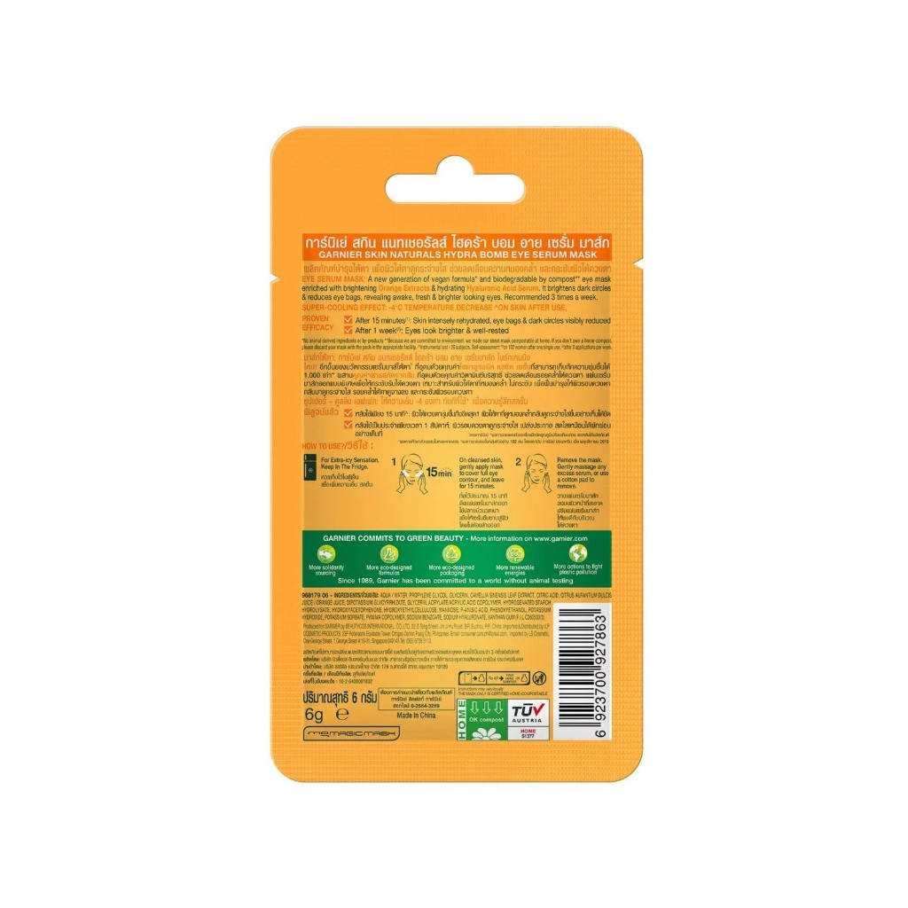 Garnier hydra nomb eye serum mask การ์นิเย่ สกิน แนทเชอรัลส์ ไฮดร้า บอม อาบ เซนั่ม มาส์ก 6 g.