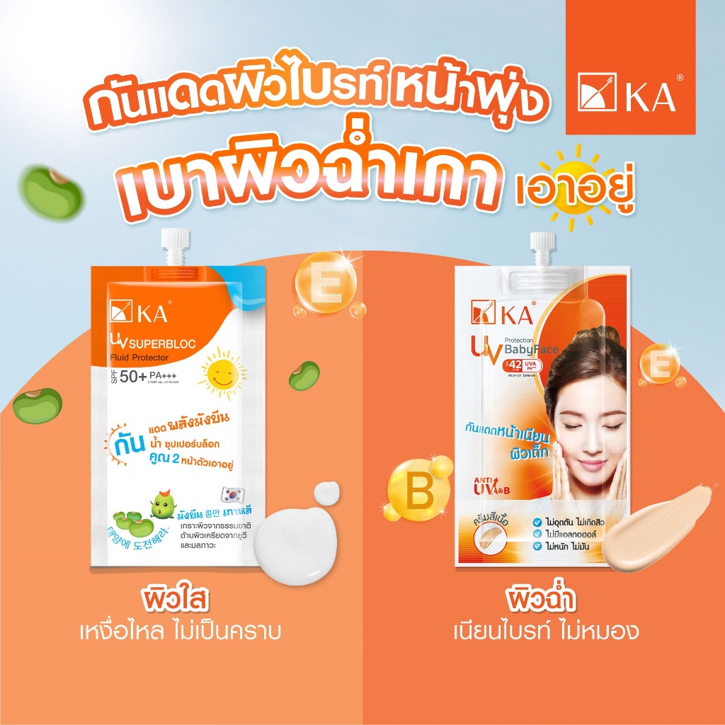 ถูก/แท้/มีไลฟ์ (ยกกล่อง 6 ซอง) กันแดด KA UV Whitening Soft Cream Superblock SPF50+PA++++ BabyFace SPF42 PA+++ เคเอ