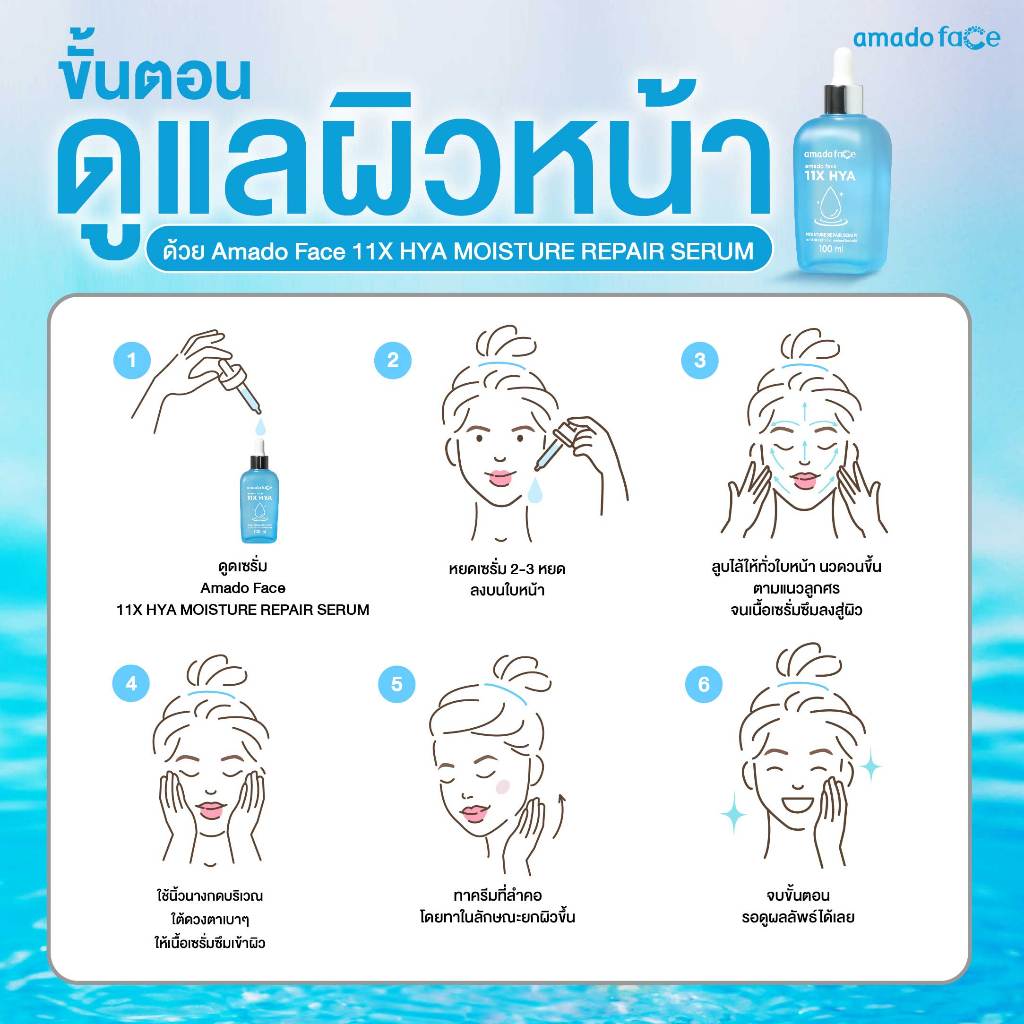 Amado Face 11X Hya Moisture Repair Serum อมาโด้ เฟส 11x ไฮยา เซรั่ม [เซรั่มสีฟ้า] [100 ml.] [1 กล่อง] ฟื้นฟูผิวหน้า