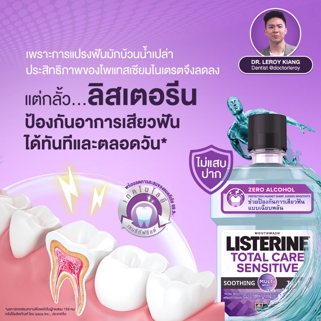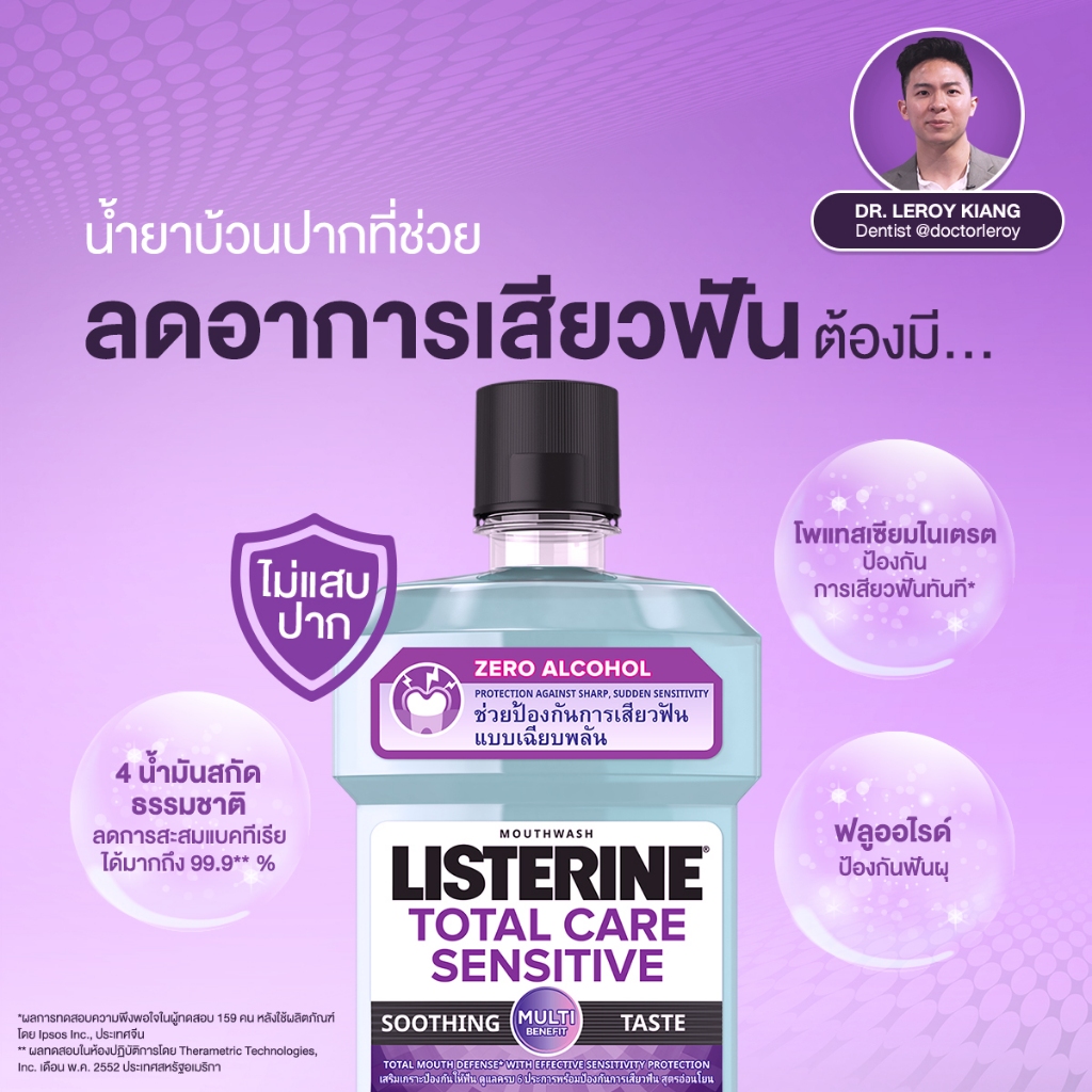 Listerine ลิสเตอรีน น้ำยาบ้วนปาก ขนาด 250 มล. ลดปัญหาปัญหากลิ่นปาก, ฟันผุ, เสียวฟัน,หินปูน 0% แอลกอฮอล์