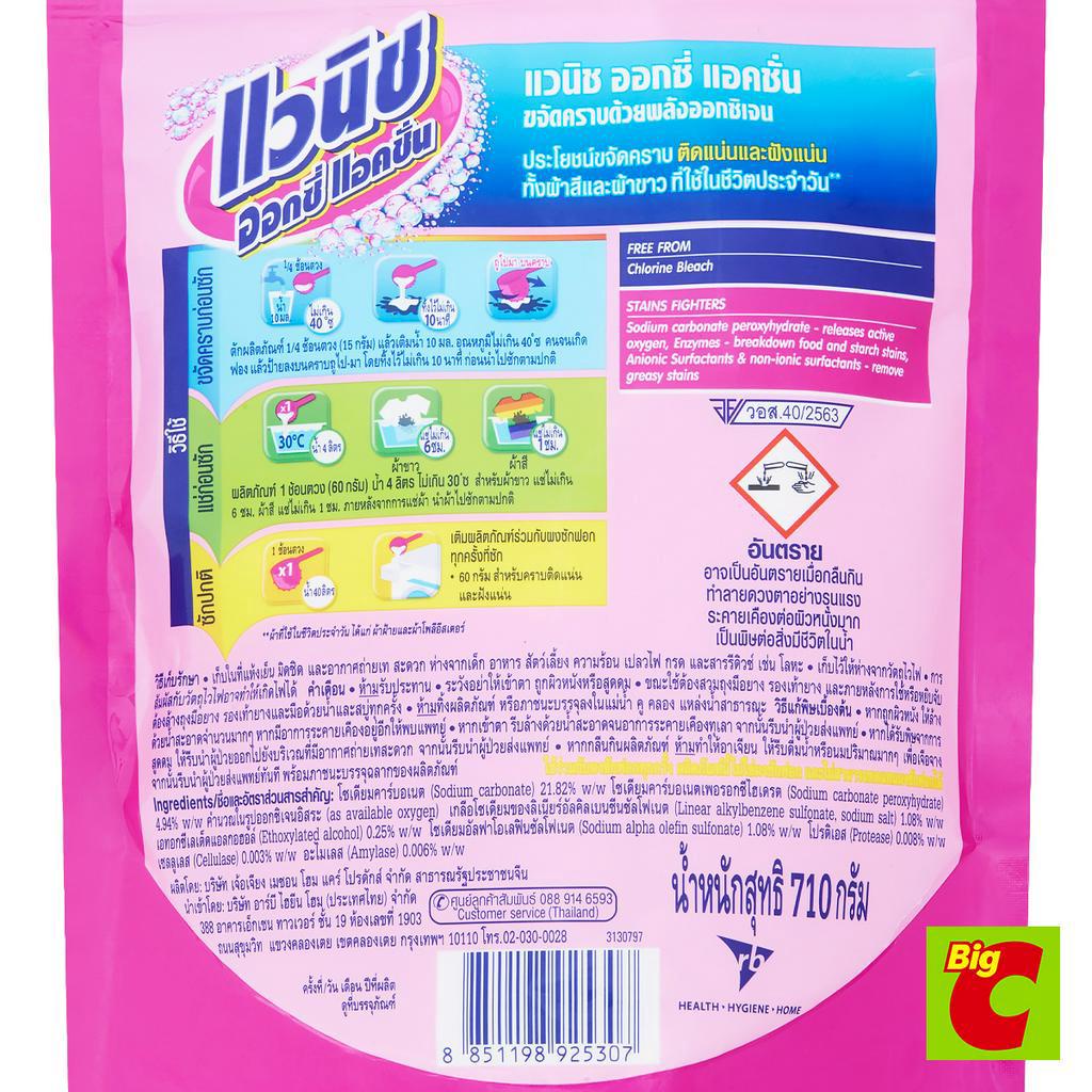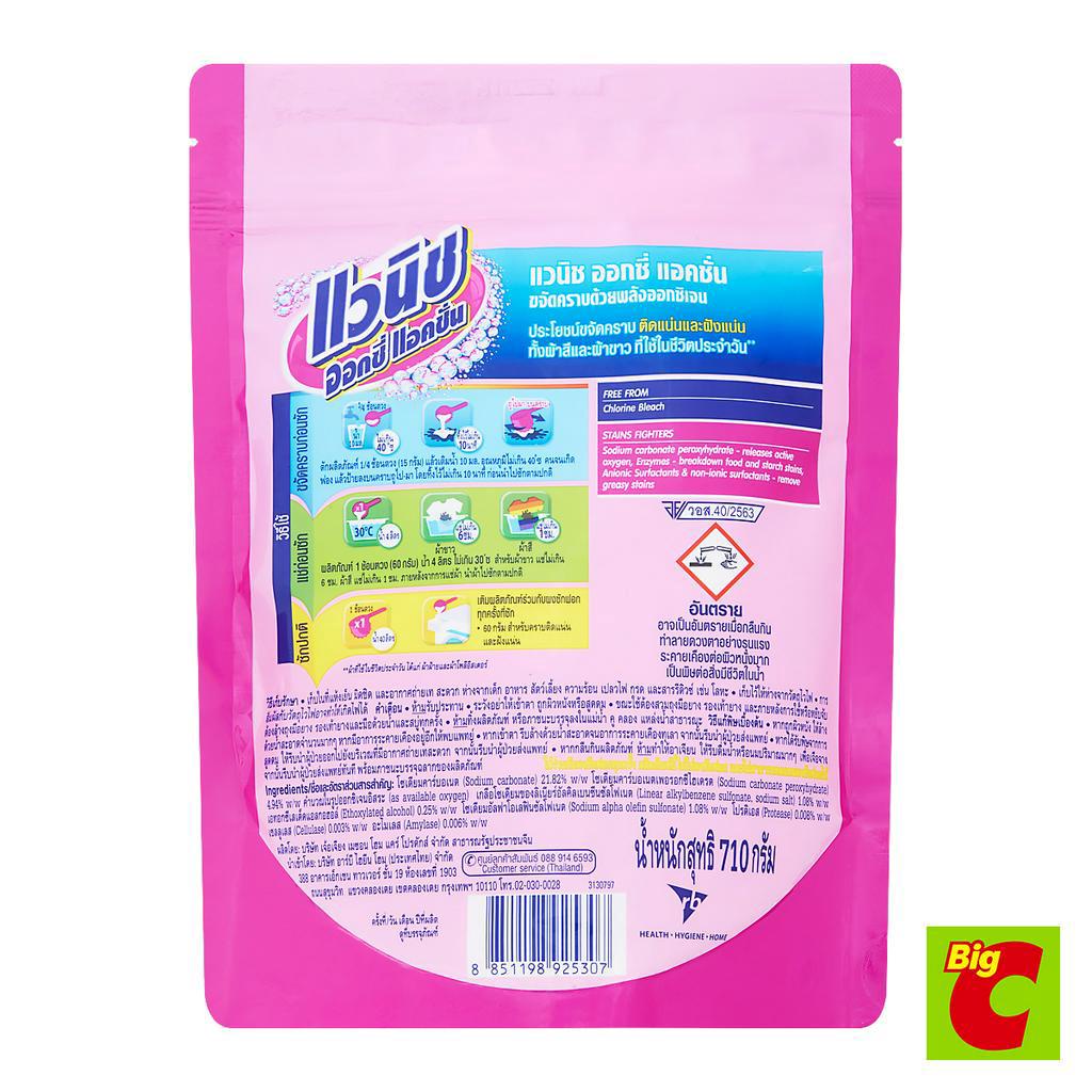 แวนิช ออกซี่แอคชั่น ผลิตภัณฑ์ขจัดคราบอเนกประสงค์ สำหรับผ้าสีและผ้าขาว 710 ก.