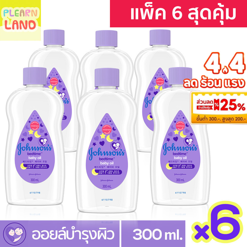 แพค 6 สุดคุ้ม เบบี้ออยล์ จอห์นสัน เบดไทม์ สีม่วง ขวดใหญ่ 6 ขวด Johnson Baby Oil Bedtime 300ml จอนสันออย บำรุงผิว