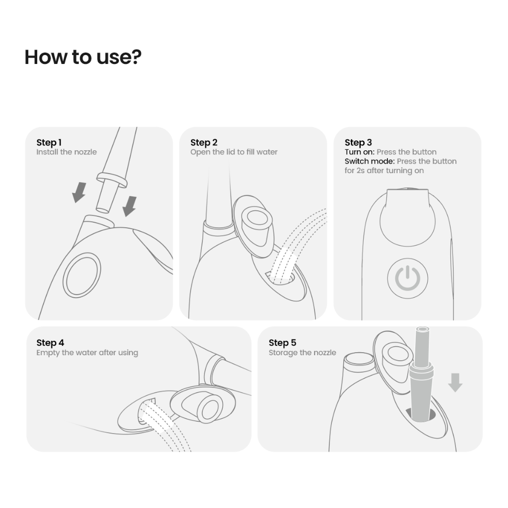 Oclean A10 Flosser ทันตกรรมแบบพกพา Oral Mouth Water Irrigator ขนาดปาล์ม 3 โหมด Mouth Wash Compatible
