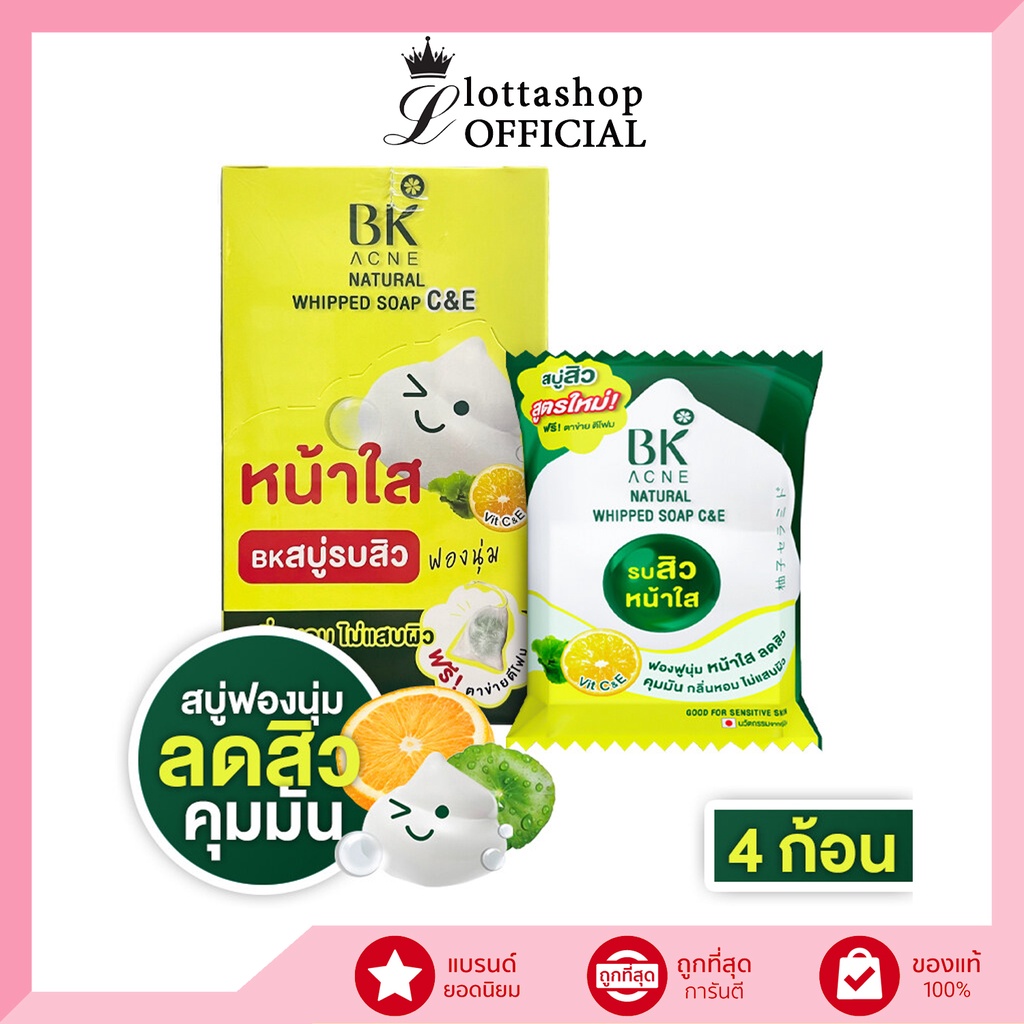 ❣️กล่อง X4 ก้อน❣️ สูตรใหม่ สบู่ บีเค แอคเน่ รบสิวหน้าใส Vit C&E BK Acne Natural Whipped Soap C&E