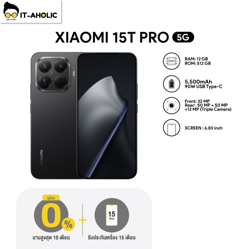 Xiaomi 15T Pro (12/512GB) กล้อง Leica 3 ตัว ชิป Dimensity 8400 จอ 120Hz แบตเตอรี่ 5500 mAh